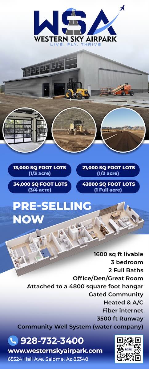Welcome to Western Sky Airpark – a private aviation community in the Arizona desert where you can live, fly, and relax on your own terms.